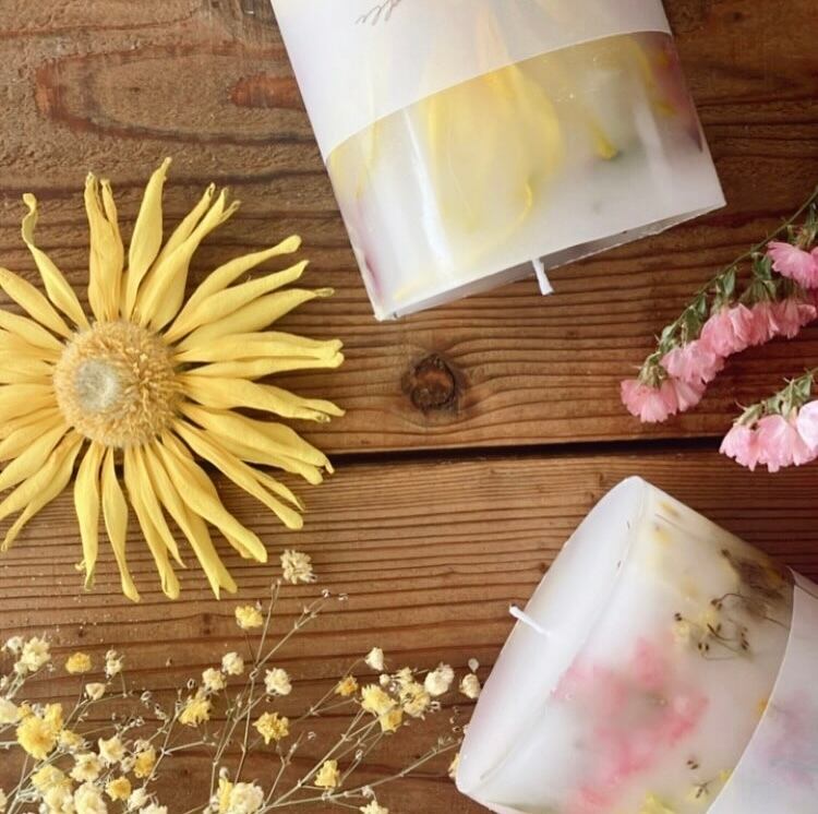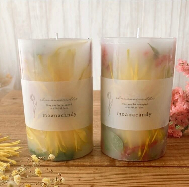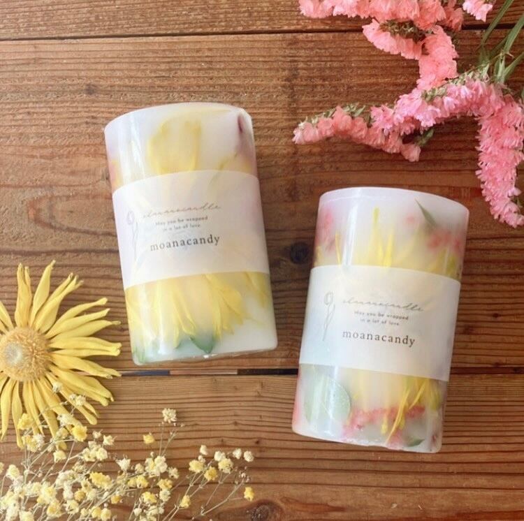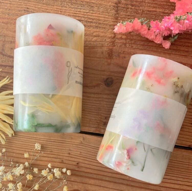 スイートピーやスターチス、かすみ草などが入った春の陽気によってすべてのものが柔らかく、美しくみえる様子を表した【春うらら】ohananocandleとなります。