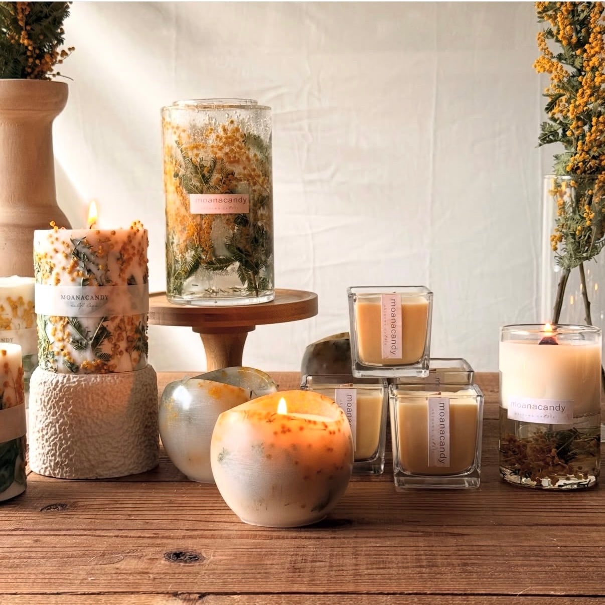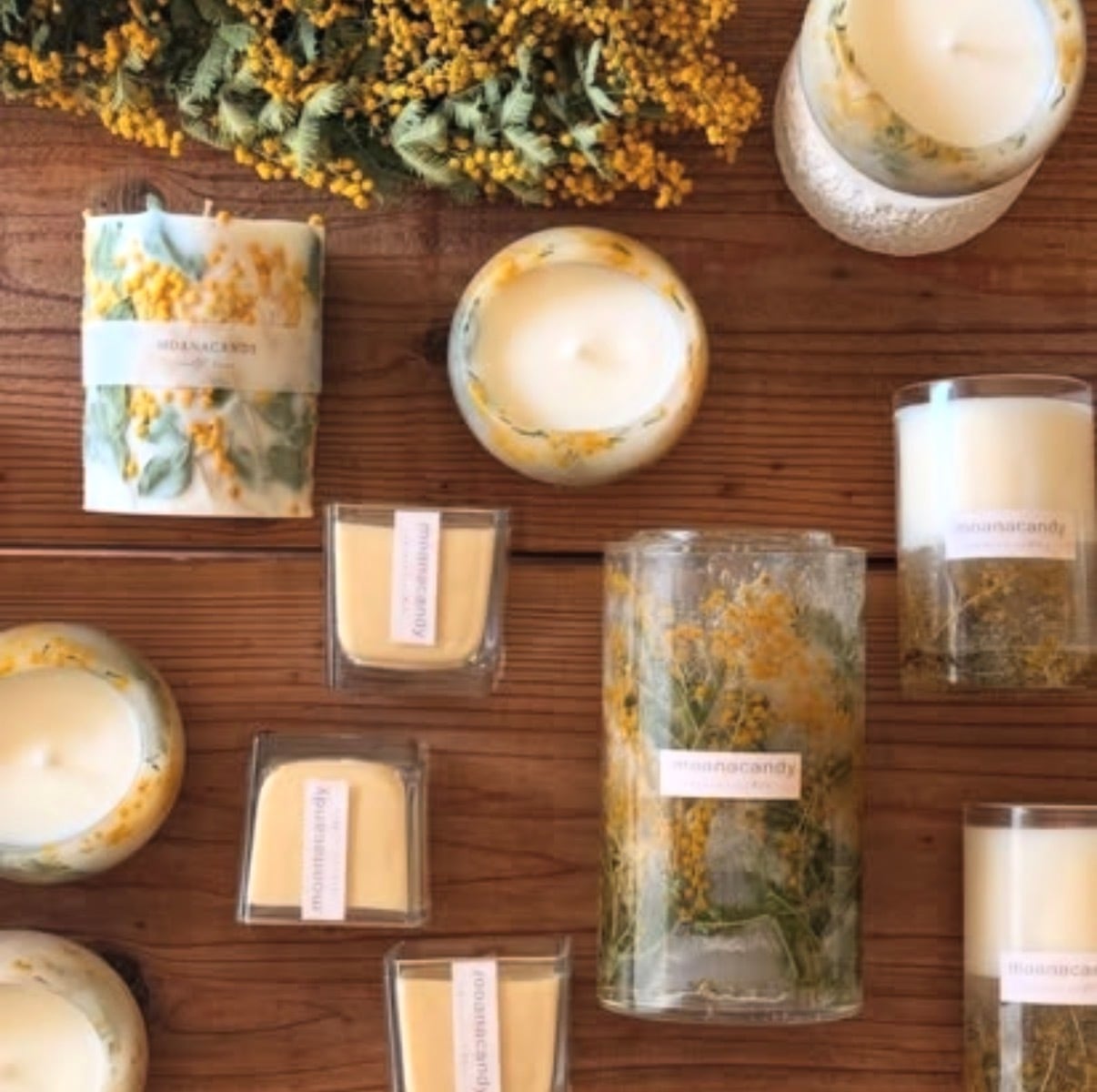 ミモザドライフラワー/ソイワックス/木芯