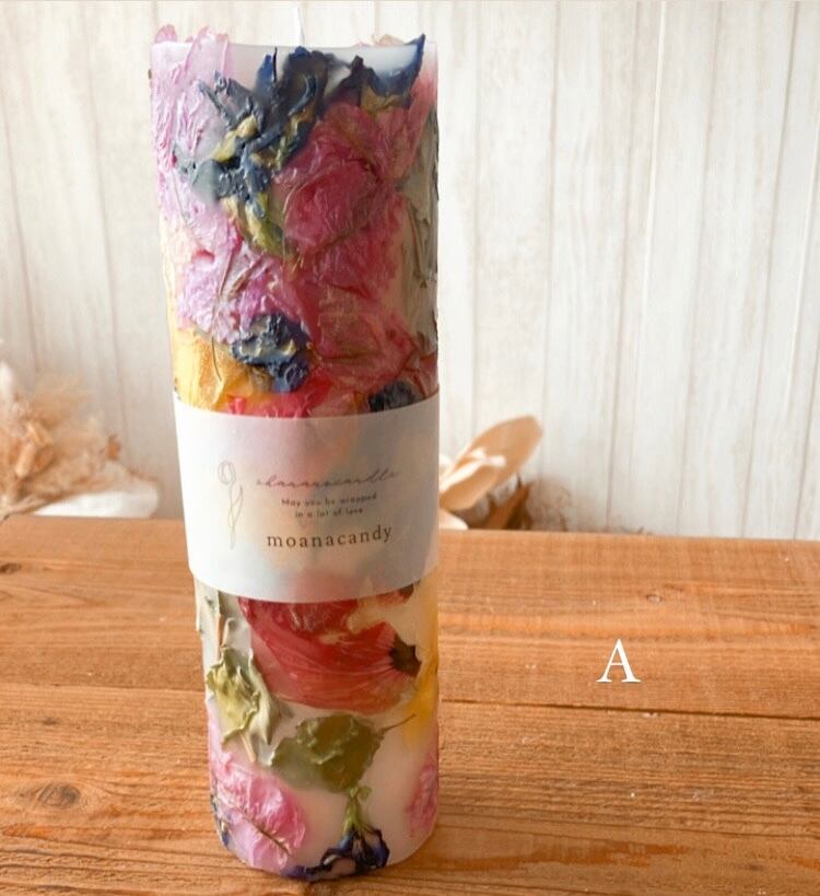 島の植物を丁寧にドライ加工し、島の恵みたっぷりなキャンドルに生まれ変わりました。